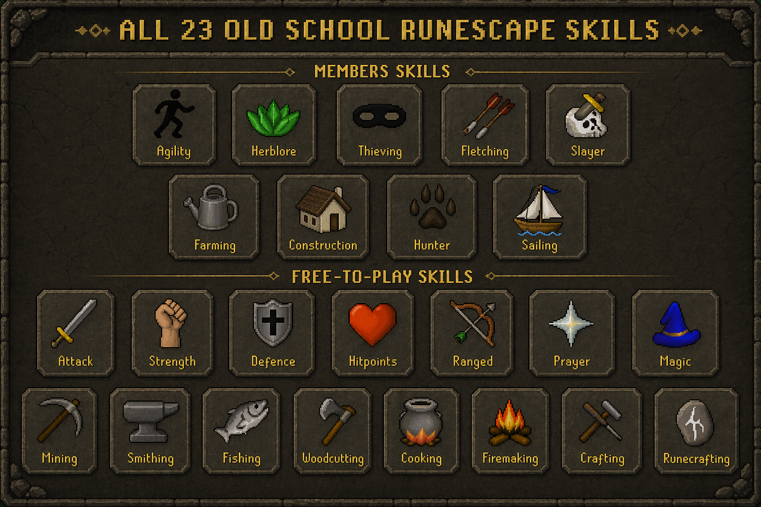 View all 24 skills with level, XP, and server rank for any Ferox.ps player.